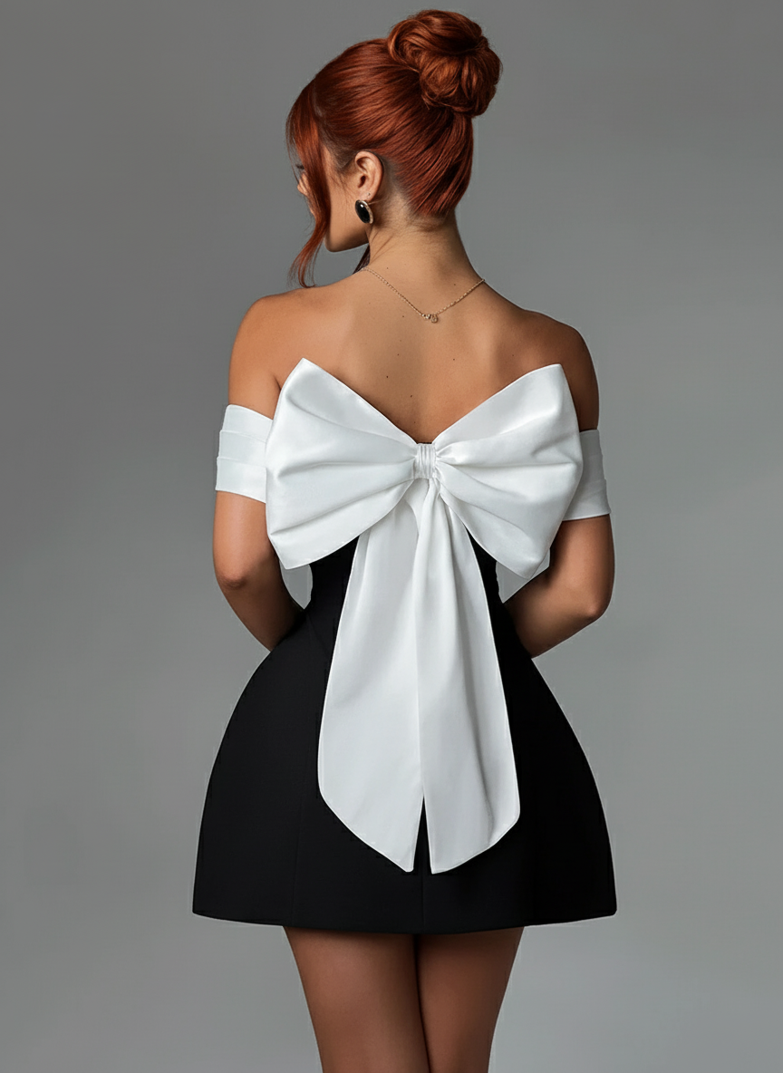 Sukienka mini bez ramiączek z kokardą...