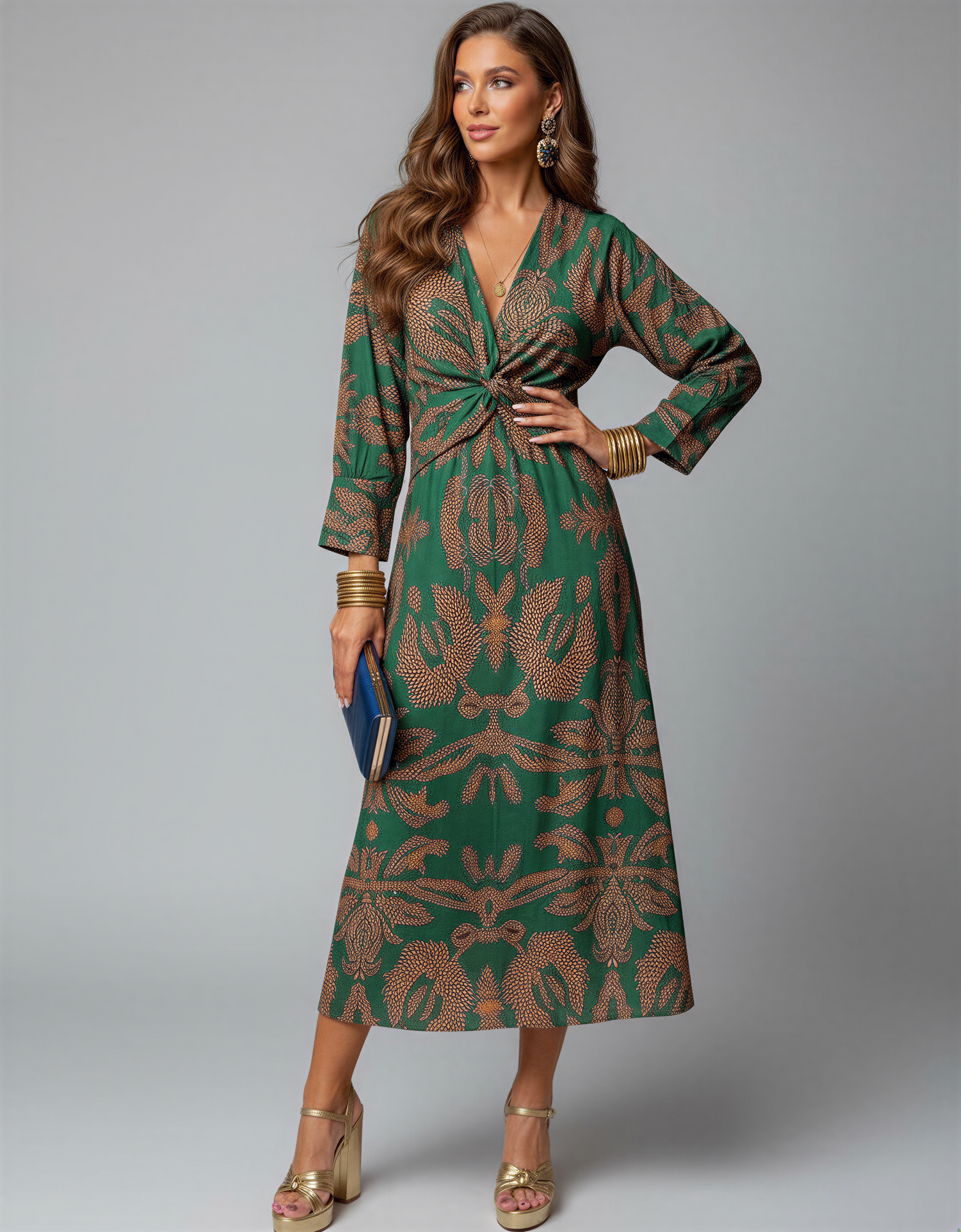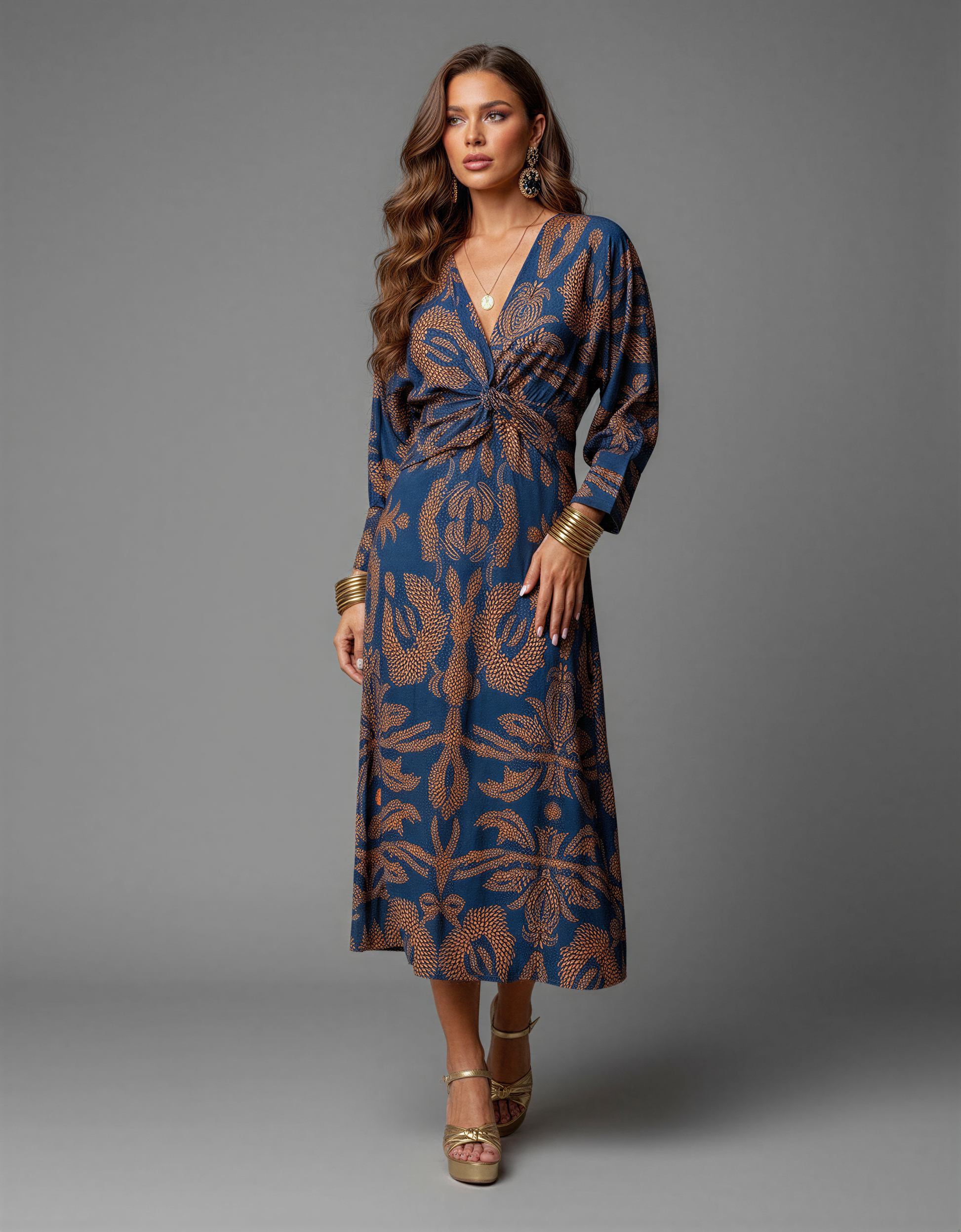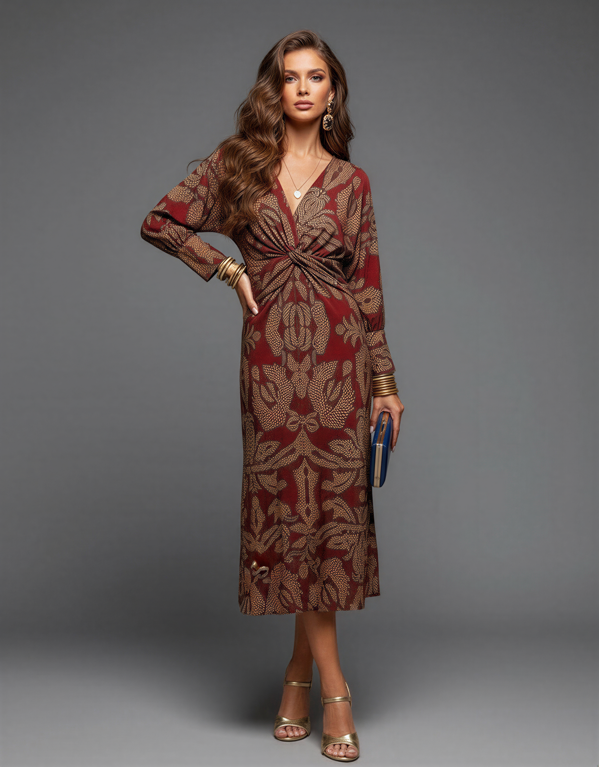 Black Long Sleeve Bodycon Midi Dress...