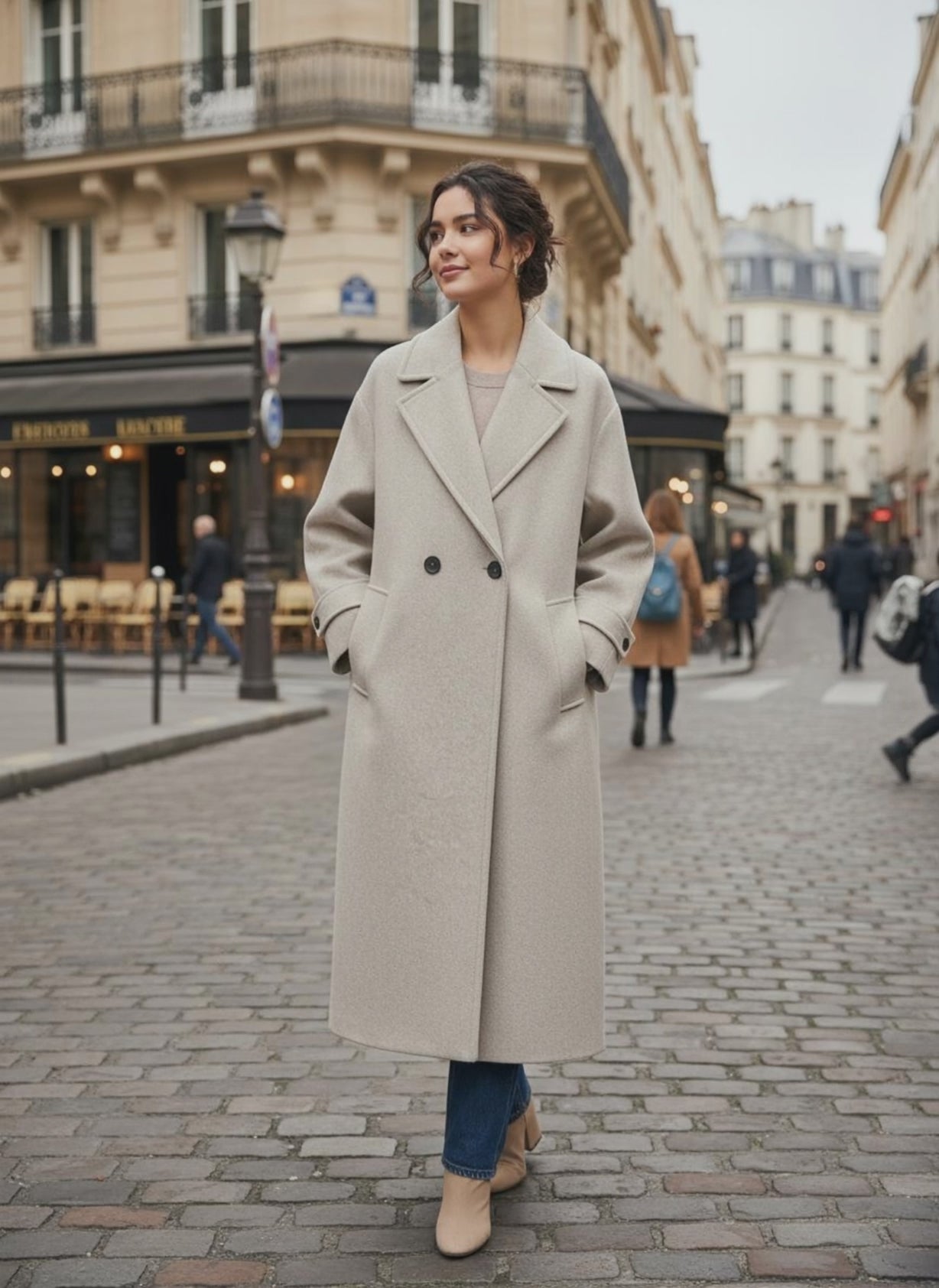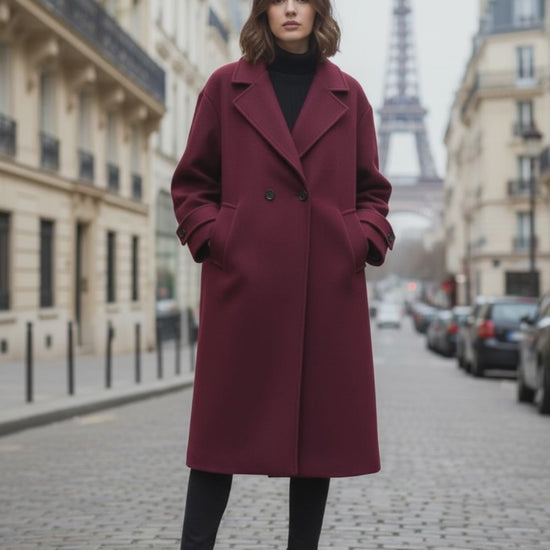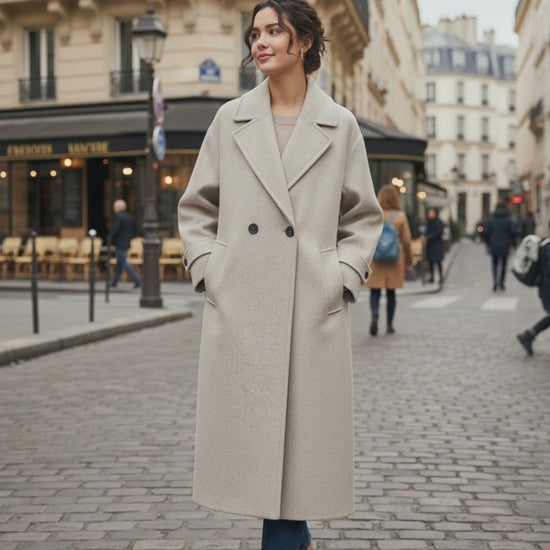 Double-Breasted Long Wool Coat | Oversized...