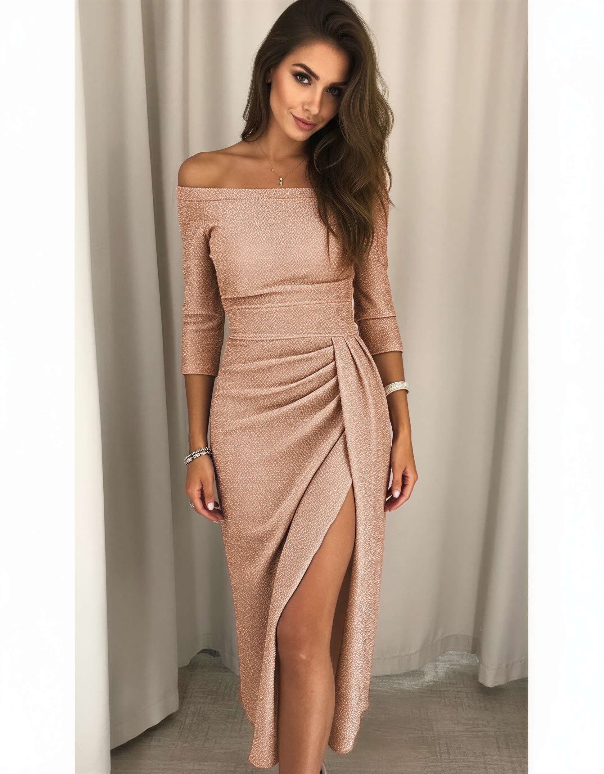 Stylish Off-Shoulder Midi Dress with Side...